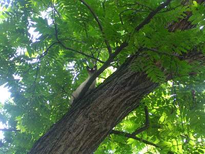 Das Bild unten zeigt Karolinchen, wie sie bei einem Picknick im Stadtpark auf einem Baum Quartier suchte....