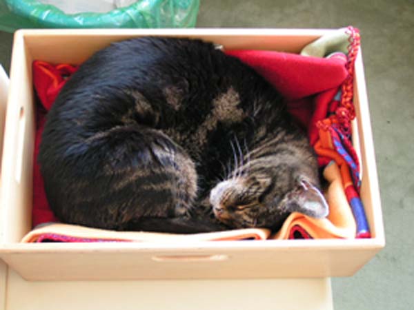 Das Foto zeigt Cherry in ihrer Lieblingskiste, die unter meinem Schreibtisch stand, sie hatte es mir gezeigt, dass sie nicht mehr konnte und wollte, diesen Tag werde ich nie vergessen. "Frauchen, ich kann nicht mehr" mit einem leisen maunz bei der Narkosespritze sagte sie Tschüß und legte sich auf ihr Handtuch beim TA, legte ihr Köpfchen auf meinen Arm und schlief ein. Für sie war es eine Erlösung, für mich Schmerzen im Herzen bis jetzt und wer weiß wie lange! -