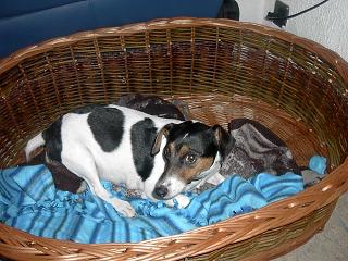 Gegen 20 Uhr wird sie wieder unruhiger.Wieder nach draußen aber diesmal nix :snooty:, also schleunigst nach Hause.Das Körbchen sammt Decke wird weiter bearbeitet, zwischendurch hächelt sie und fipst.