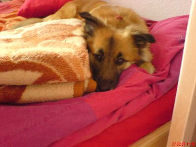 Leider hat sie bei dem Autounfall nicht nur körperlich was abgekriegt, sie ist 6 1/2 std lang durch die Bauernschaften gerannt wie ein Windhund(Fluchttrieb) und ließ sich von der Polizei,Helfern nicht wiederbekommen. Sie ist dann leider auch über :rolleyes:ein Schützenfest gelaufen, nach diesen 6 1/2 std wurde sie dann von Freunden eingekesselt und sie kam wieder zu besinnung.