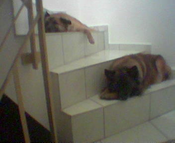 Sie versucht dann die Ohren so weit es geht und den Kopf zu drehen, aber die Pfoten müssen so stehen bleiben!Es darf auch ruig ein Kind oder Hund daher laufen!