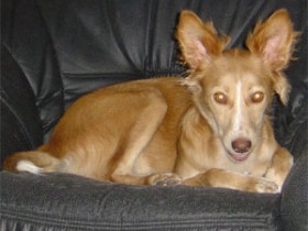 Ich würde sie ja sogar als reinen Podenco abstempeln, aber das kriegt sie von der Größe her nich hin...Und sie hat wirklich grüne Augen. Wunderschön...Die Augen sind eigtl hauptsächlich gelb und nur um die Pupille sind sie dunkelgrün.