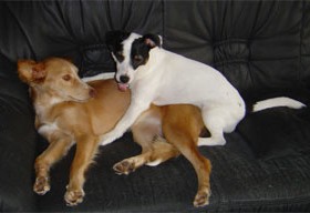 Wir waren dann kurz draußen, Nemo voll Begeisterung die ganze Zeit an ihr gehangen..In der Wohnung gings dann gleich richtig los. Anfangs war sie recht zurückhaltend und eher "lass mich in Ruhe", während Nemo der Motivator um sie rumsprang wie ein Flummi. Aber dann! Fing sie an ihm hinterherzurennen.
