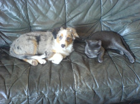Hab Faye auf meinen Schoß genommen und sie vorsichtig dran schnüffeln lassen. Faye fand Kim und Nicky echt wahnsinnig interessant :D! Sie ist dann auch vorsichtig hinter ihnen her, aber sobald sie sich umgedreht haben und in ihre Richtung gelaufen sind, ist sie schnell zu mir gekkommen:D!