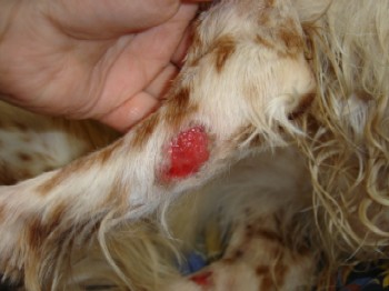 Die Wunden kommen urplötzlich - entweder es ist einfach eine Stelle da - oder man entdeckt eine dunkle Stelle unter dem Fell und wenn man etwas draufdrückt kommt einem schon der Sabber entgegen weil sich unterirdisch schon eine Megaplatte entwickelt hat...