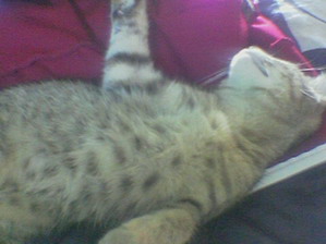 Die Kleine Sieht das und läuft hinterher und als die Große am trinken war, hat Cookie ihr dauernd mit der Pfote auf dem Pop gehaun! So als wenn sie sagen würde: " Hau ab!" Das ist meins!!!