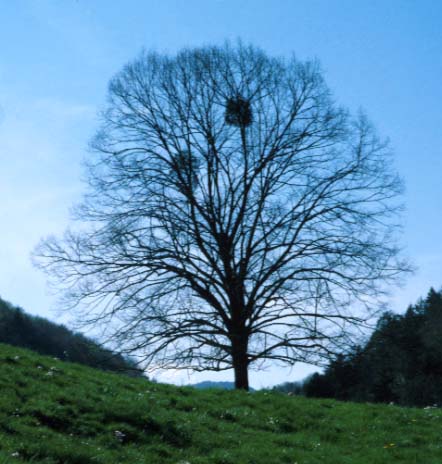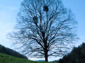 Die kleinen runden Gewächse im Baum sind Misteln: -