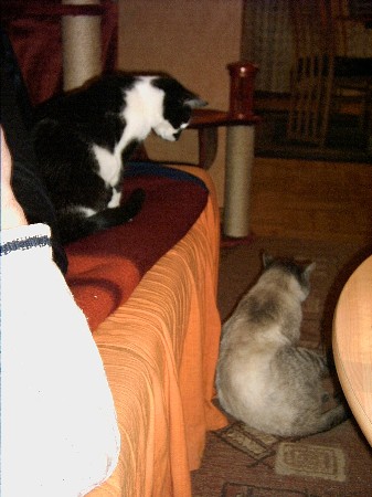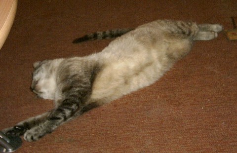 Gestern haben wir unten gesessen und gegessen, also ich hab den Kater nicht wieder erkannt, er saß fast auf dem Tisch