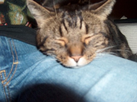 Nach dem Essen putz er sich und will küscheln, egal wo ich bin und was ich mache......ich kann da ja nicht nein sagen also wird da ausgiebig gekuschelt und auch eingeschlafen, er ist ja sooooo müde egal wo wir sind, es wird geschlafen und richtig.....fängt dan auch an zu schnarchen.....also nicht schnurrlen....richtiges schnarchen.........und ich sitze da und will ihn nicht wecken er ist ja so ein süsser.....ist ja auch egal wenn mein arm langsam aber sicher kribelt und bald abstirbt. Mein Charli ist mir ja wichtiger......der arme hatte so einen hunger und war so müde....der arme. Man könnte meinen er hätte einen sehr arbeitsreichen, strengen tag hinter sich. Mmmmhh wer war den heute eigentlich arbeiten? Ich oder er??