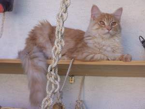 Manchmal denke ich Coonies wissen wie schön sie sind, so stolziert wenigstens unser Dicker durch die Wohnung, immer erhobenen Kopfes und ein Pfötchen nach dem anderen.