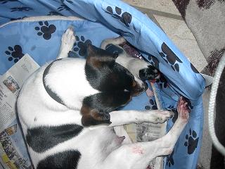 Aber sie hat schon gefressen , habe Ihr ein Leckerchen aus Welpenmilch, Welpenfutter und Leberwurst