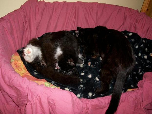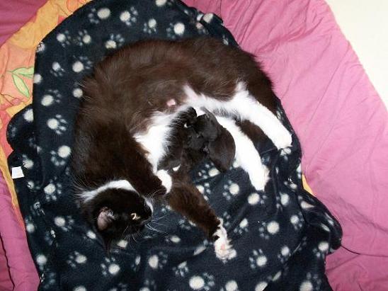 Irgendwann gegen halb vier sind wir dann beide wohl eingeschlafen, jedenfalls hatte sie da schon 3 Kitten. Heute morgen waren es dann 4, eins hat sie dann noch alleine bekommen