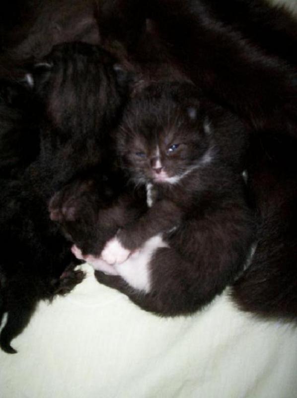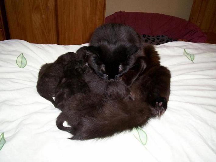 Also Flausch wieder zu ihren Kitten in den Korb, die Kleinen direkt an die Milchbar (machen die eigentlich auch mal was anderes???), Flausch zufrieden am schnurren und Quietschi in der Kuschelhoehle am schnarchen. Also alles bestens...