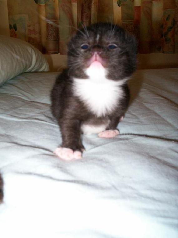 In der Hoffnung einen etwas besseren Ueberblick zu behalten und nicht nur schwarz auf den Fotos zu haben hatte ich die Kleinen mal alle 5 zur Fotosession auf das Bett geholt und waehrend ich unter abartigsten Verrenkungen versucht habe ein paar Bilder zu bekommen auf denen man auch was erkennen kann hat Flausch sich ein Sonnenbad in der Kueche gegoennt und Fussel hat das ganze recht interessiert beobachtet. Mal ein Foto davon, wie sie neben mir auf dem Bett hockt und sich innerlich wahrscheinlich ueber meine Verrenkungen kaputt lacht
