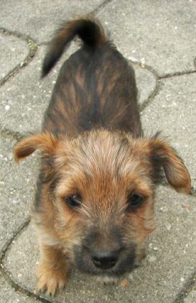 im mom lernen wir fleissig stubenrein werden. das problem ist einfach nur: er ist blitzschnell. er läuft einmal im kreis und dann hockert er sich auch schon hin. blöd. wir wohnen im 2. stock und es dauert zu lang ihn zu packen und runter zu tragen (treppensteigen soll er im mom noch nicht - und er könnte es auch nicht).