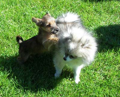 das bild ist mit vom samstag. da spielt er mit nem zwergspitz, der super süß war. ganz klein und puschelig.