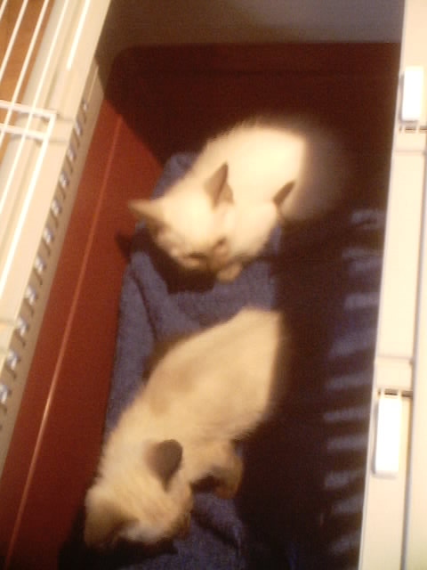 kater jules war etwa 12 wochen alt als wir ihn 2005 bekamen. lilly hat ihn gehasst, weil er sich so selbstverständlich zu ihr gelegt hat und "ihre wohnung" unter beschlag nahm. jetzt sind die beiden ein herz und eine seele und kuscheln den lieben langen tag.