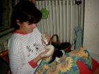 lilly war 20 wochen, als wir sie 2004 vom bauernhof geholt haben. sie war ganz scheu, da sie kaum menschenkontakt hatte. die ersten drei wochen waren der horror, da sie nachts nur geschrien hat und die wände hochgeklettert ist. aber jetzt ist sie sehr verschmust und kein bißchen schüchtern.