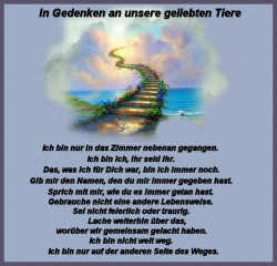 Ich hoffe dir geht es im Regenbogenland gut und du paßt gut auf Koda und Peanuts auf?