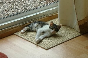 Ich bin ein absoluter Katzenliebhaber und wollte schon immer ein eigenes Katerchen haben. Als wir dann endlich unseren Traum vom eigenen Haus mit grossen Garten wahrmachten, ging auch dieser Traum in Erfuellung. :biggrin: Oliver ist ein ganz normaler Hauskater und sehr sehr liebenswert. Wir haben ihn mit ca. 6 Wochen von einer Farm gekauft. Dort ist ploetzlich die Mutter ueberfahren worden, somit hat der Bauer dann nette Dosis fuer die insgesamt 6 Kittens per Zeitungsanzeige gesucht. Ich habe mich sofort in den kleinen Oli verliebt. Er war der ruhige und sehr interessierte Racker im Koerbchen; waehrend seine Geschwister aus dem Korb krabbeln wollten und miaut haben, hat er jede Bewegung interessiert beobachtet und ohne zu jammern sich auf den Arm nehmen lassen. Da war fuer mich klar, er ist ein lieber, freundlicher Kerl, der keine Angst hat. Seamus und Oli sind die dicksten Freunde und auch so hat er sich wunderbar eingelebt. Ich denke, er ist der lebende Beweis, dass auch kleine Kitten, die leider eine Menge nicht von Mama lernen konnten, zu ganz normalen, ohne Verhaltensstoerungen grossen Tigern heranwachsen koennen. Hierzu moechte ich mich ganz lieb an Catflower richten. Ich finde schon, dass es Sinn macht, die Katzen solange wie moeglich bei der Mama zu lassen, damit alles beigebracht werden kann und ich wollte nie ein Kitten unter der 14-15 Woche haben, aber manches Mal kommt es eben anders und dann kann nur gehofft werden, das liebe Dosis sich um die kleinen kuemmern:wink: Liebe Gruesse eure Carina alias MoulinRouge