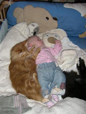Gina klammert sich am kratzbaum fest und hat keinen halt mehr bekommen und tretet Nico regelrecht um , ist aber nicht viel passiert er hat ne kleinen kratzer an der stirn und ist auf den poppes gefallen hat erst mal geweint aber eher aus schreckt und jetzt jackt er sie wieder