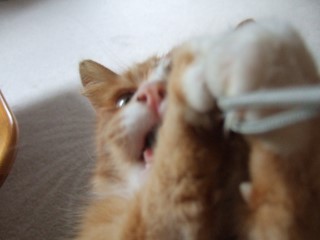 Die kleine Maus war 5 bis 6 Wochen alt, als sie zu mir kam, also viel zu jung. Ich habe sie von Bekannten einer Kollegin bekommen, sehr suspekte Leute. Mir wurde erzählt, sie müssen umziehen und können die Katzen nicht behalten, sie sind am gleichen Tag auch die Mamakatze „losgeworden“. Wenn sich niemand für die Miezen gefunden hätte, hätten sie sie wohl einfach auf ihrem Grundstück zurück gelassen. So gesehen war es für Lucy wohl besser, das sie bei mir war. Aber sie blieb ein Sorgenkind ihr Leben lang. Sie wollte bzw. konnte am Anfang nicht fressen, ich habe alles mögliche versucht, um sie zu päppeln und irgendwie hat das dann auch geklappt. Das Problem an der Sache: sie hat nie freiwillig Katzenfutter gefressen. Sie hat, als sie noch klein war, irgendwann Interesse an Salami gezeigt und ich habe sie naschen lassen, weil ich so froh war, dass sie überhaupt was anderes als Welpenmilch haben wollte. Dabei ist es aber dann auch geblieben, sie hat sich nur von Wiener Würstchen, Salami und Käse ernährt. Auch tagelanges hungern lassen auf Empfehlung des TA hat nicht geholfen. Irgendwann haben mein Freund und ich dann angefangen, Lucy zweimal in der Woche mit Katzenfutter zwangsweise zu füttern, um den immer schlimmer werdenden Durchfall in den Griff zu kriegen.