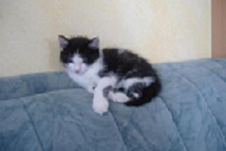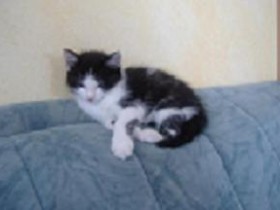 der kater is 6 wochen alt und schwarz mit weißen flecken...