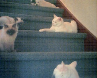 2 Coulorpointkatzenmädchen (4 Monate ) dazu 2 Chihuahua - Hundemädchen. Dazu 3 Kinder und 2 große Dosenöffner. In dieser großen gemeinschaft haben übrigen die Katzen das sagen, so wie es auch sein muß -