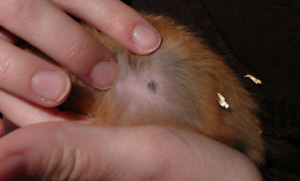 Schau mal nach, ob dein Hamster auf der anderen Seite (rechts?) noch so einen Fleck auf gleicher Höhe hat.