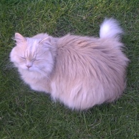 noch ist alles ruhig. Ich geb ihr fünf kleinere Mahlzeiten am Tag und sonst liegt sie viel in der Wurfkiste oder in der Höhle des Kratzbaumes und schläft. Zum Schmusen kommt sie immer raus und legt sich auf meinen Schoß, so dass ich die Bewegungen der Kitten durch die Bauchdecke super spüren und sehen kann.