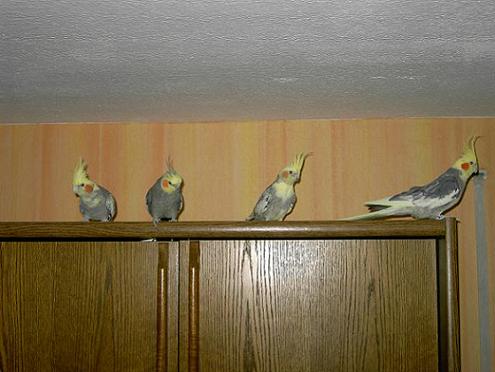 Sind wirklich tolle Tiere. Die 4 sind zwischen 2-3 Jahre alt und bekommen täglich Freiflug. Ich mache quasi morgens die Käfigtüre auf und abends zu.