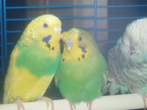 bei meinen Eltern (wo ich zur Zeit grad wohne) gibet 2 Wellis. Bubi (der grüne) und Moritz II. (der blaue) sind schon ganz schön frech. Letzt haben sie die Kurve net richtig gekriegt und sind volle Lotte aufm Frühstückstisch gelandet :))