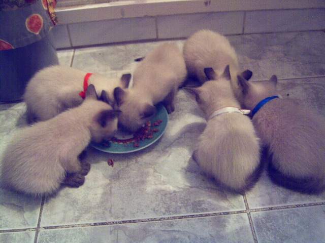 Unsere Kitten sind schon ! 5 Woche alt, sie gehen schon zur Katzenklo, manchmal passier ein Maleur aber es geht schon. Seit paar Tage bekommen die Nassfutter...hm... das schmeckt !!!!